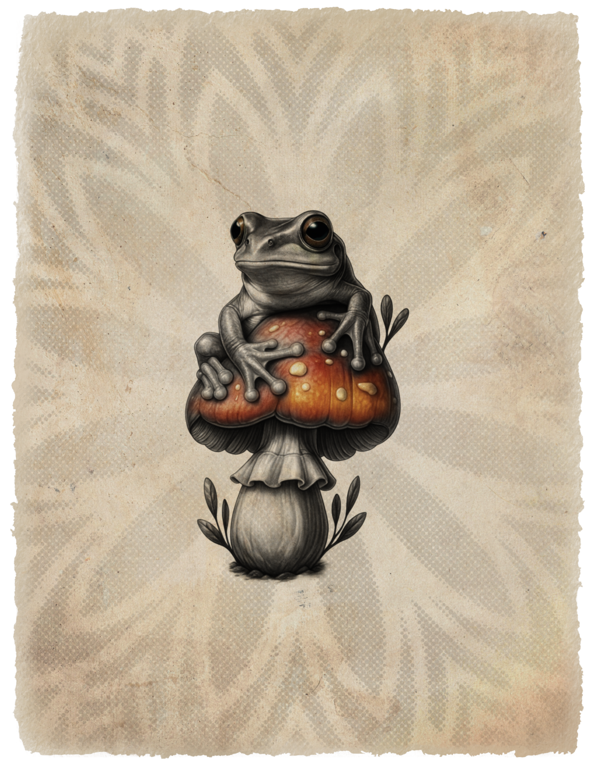 Forest Frog | Textured frog perched on an amanita mushroom. Great for arms | $900
