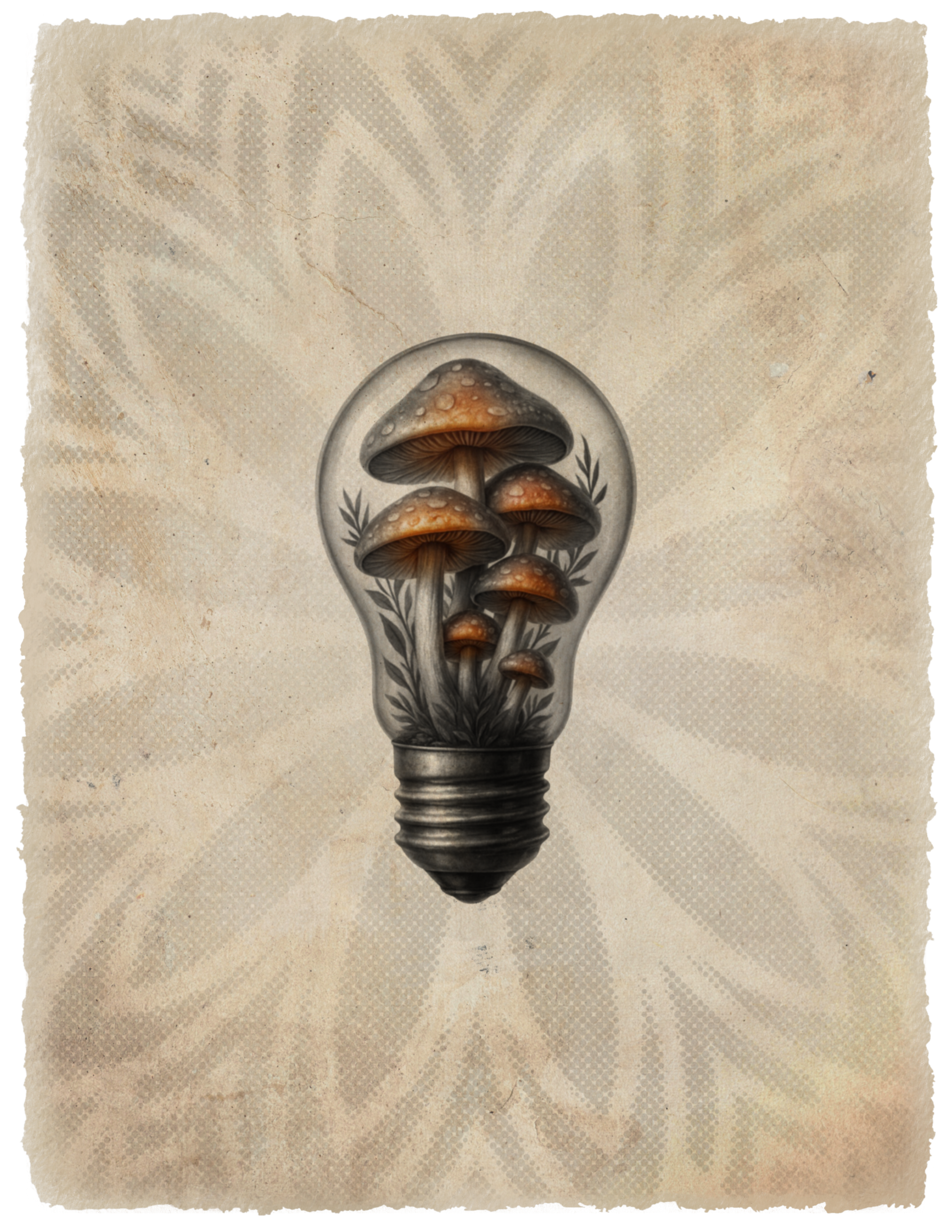 Lightbulb Mushrooms | Terrarium-style mushroom cluster inside a vintage bulb. Conceptual and whimsical | $900