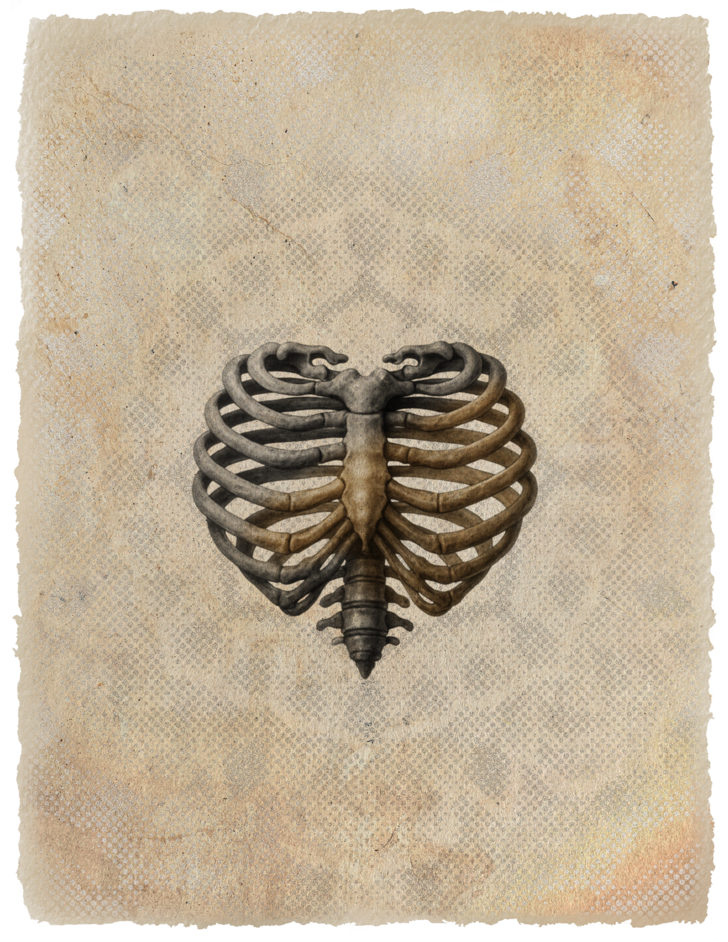 Lovely Ribcage | A stylized ribcage form with heart-like structure, rendered in detailed micro-realism. Ideal for upper arm or shoulder. | $1100